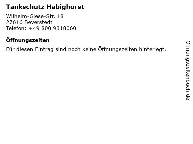 | Öffnungszeiten Tankschutz Habighorst in Beverstedt anzeigen | |