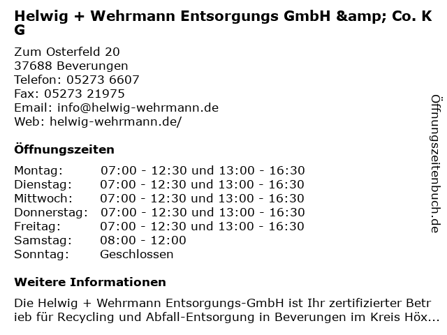 Branchen & Suchbegriffe zu Helwig + Wehrmann Entsorgungs GmbH & Co. KG:entsorgungs, helwig, wehrmann |