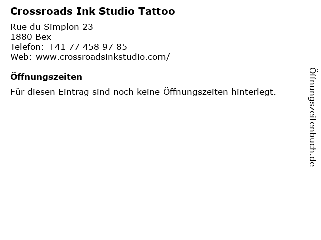 | Öffnungszeiten Crossroads Ink Studio Tattoo in Bex anzeigen | |