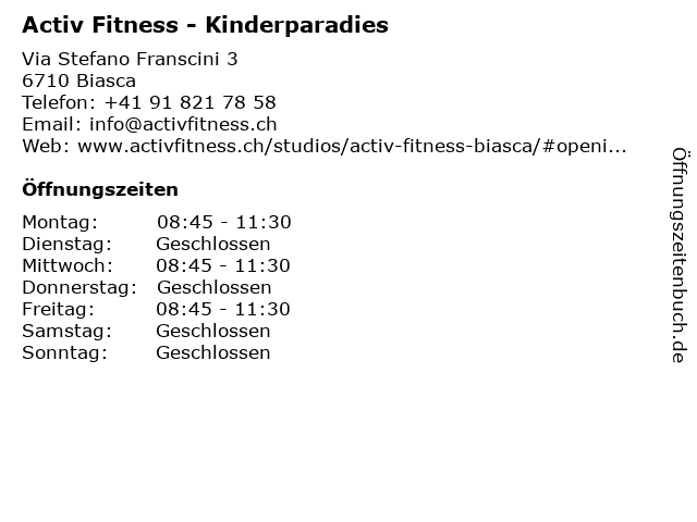 Branchen & Suchbegriffe zu Activ Fitness - Kinderparadies:activ, fitness, gym, kinderparadies, sportstudio, studio |