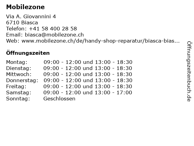 Öffnungszeiten Mobilezone in Biasca anzeigen | |