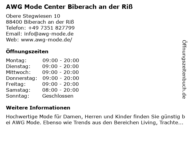 1 Mode Ecke Mode für Sie Udo Witzovsky Damenmodegeschäft (Entfernung: 3,27 km) Bürgerturmstr. 20, 88400 Biberach an der Riß 6 |