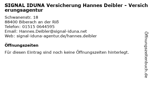 | SIGNAL IDUNA Versicherung Hannes Deibler - Versicherungsagentur anrufen | |