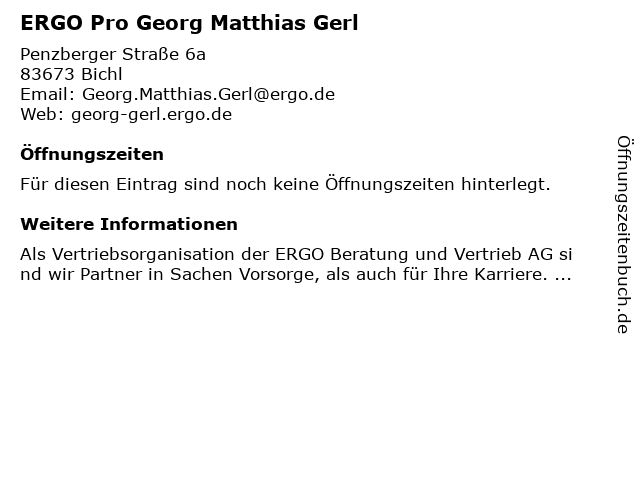 | Öffnungszeiten ERGO Pro Georg Matthias Gerl in Bichl anzeigen | |