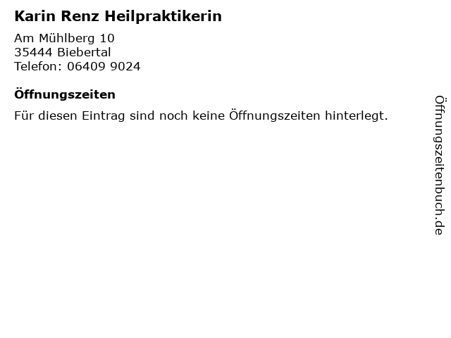 | Öffnungszeiten Karin Renz Heilpraktikerin in Biebertal anzeigen | |