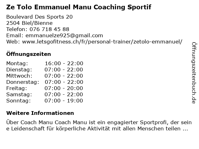 Branchen & Suchbegriffe zu Ze Tolo Emmanuel Manu Coaching Sportif:coaching, emmanuel, ernährungsberatung, fitnesscenter, manu, sportif, tolo, ze |