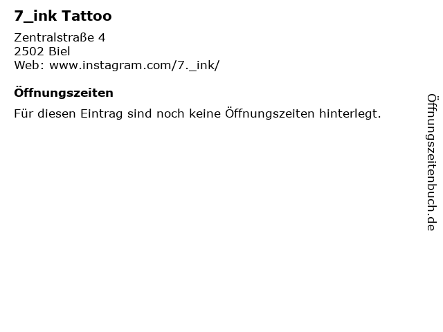 | Öffnungszeiten 7_ink Tattoo in Biel anzeigen | |