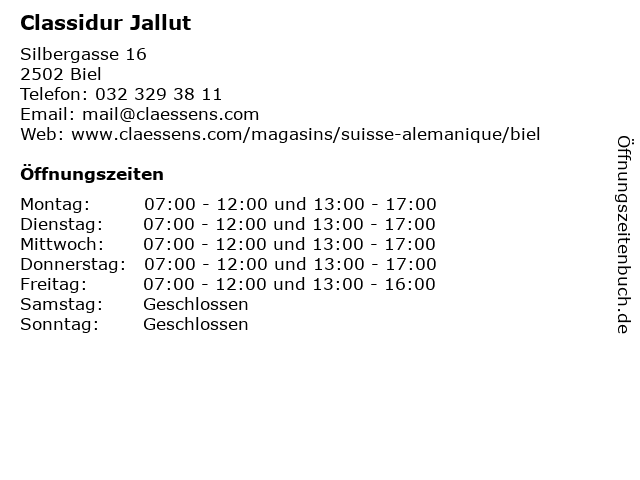 | Öffnungszeiten Classidur Jallut in Biel anzeigen | |