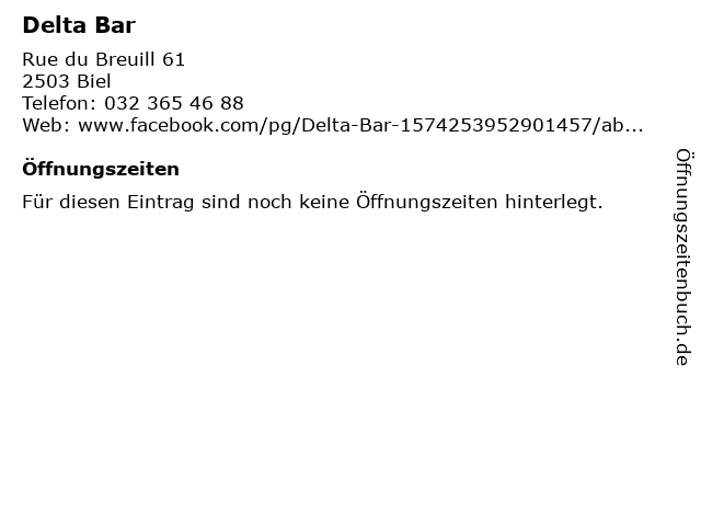 | Öffnungszeiten Delta Bar in Biel anzeigen | |
