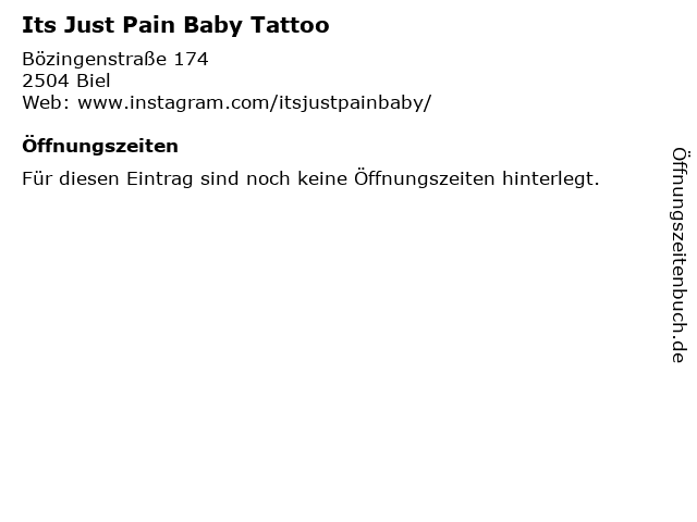 | Öffnungszeiten Its Just Pain Baby Tattoo in Biel anzeigen | |