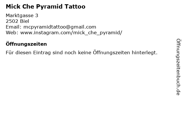| Öffnungszeiten Mick Che Pyramid Tattoo in Biel anzeigen | |