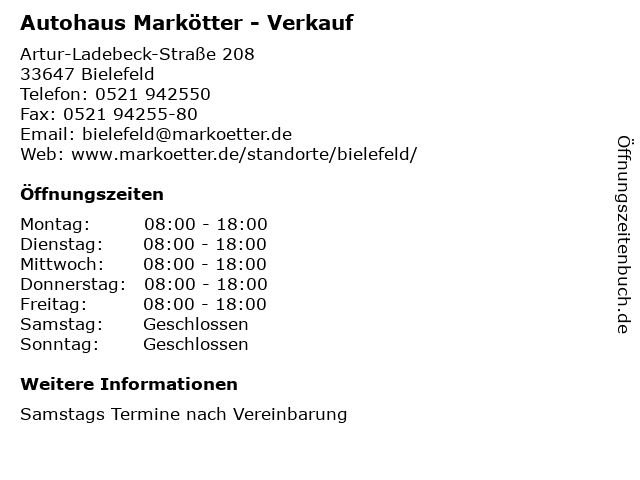 3 Autohaus Markötter Bielefeld - Werkstatt (Entfernung: 0,04 km) Artur-Ladebeck-Straße 208, 33647 Bielefeld 4 LVM Versicherung Torsten Markötter - Versicherungsagentur (Entfernung: 13,42 km) Marienfelder Straße 6, 33330 Gütersloh 6 |