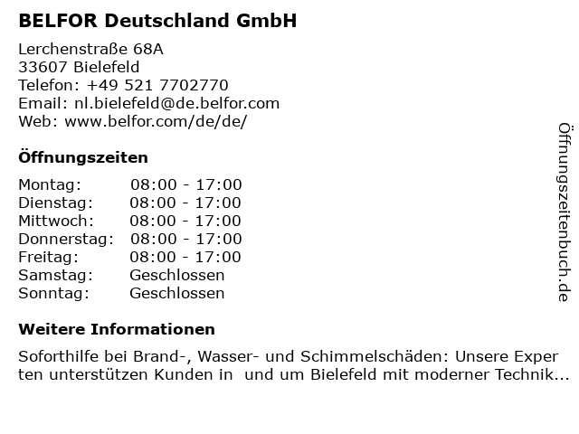 | Öffnungszeiten BELFOR Deutschland GmbH in Bielefeld anzeigen | |