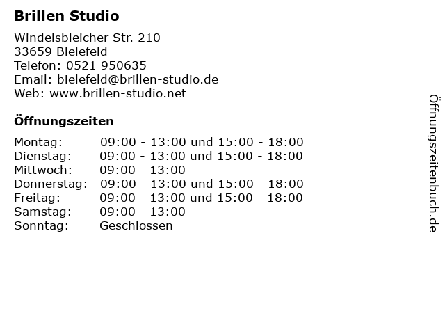 | Öffnungszeiten Brillen Studio in Bielefeld anzeigen | |