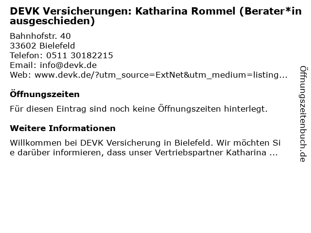 | DEVK Versicherungen: Katharina Rommel (Berater*in ausgeschieden) anrufen | |