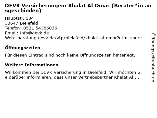 | DEVK Versicherungen: Khalat Al Omar (Berater*in ausgeschieden) anrufen | |