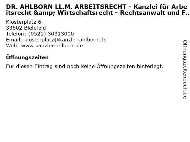 | DR. AHLBORN LL.M. ARBEITSRECHT - Kanzlei für Arbeitsrecht & Wirtschaftsrecht - Rechtsanwalt und Fachanwalt für Arbeitsrecht & NOTAR anrufen | |
