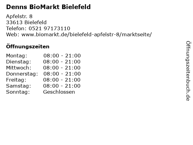 | Öffnungszeiten Denns BioMarkt Bielefeld in Bielefeld anzeigen | |