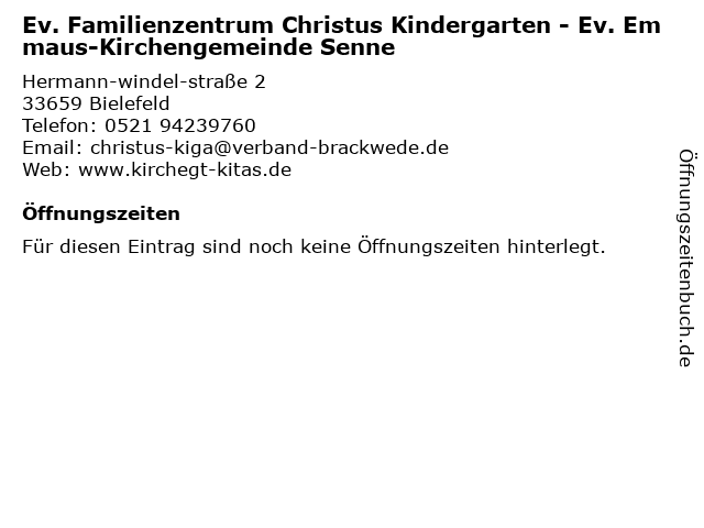 | Ev. Familienzentrum Christus Kindergarten - Ev. Emmaus-Kirchengemeinde Senne anrufen | |