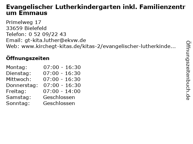 Branchen & Suchbegriffe zu Evangelischer Lutherkindergarten inkl. Familienzentrum Emmaus:emmaus, ev., evangelischer, familienzentrum, inkl., kirchengemeinde, lutherkindergarten, senne |
