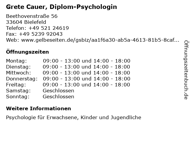 Branchen & Suchbegriffe zu Grete Cauer, Diplom-Psychologin:cauer, diplom, diplom psychologin, grete, psychologie, psychologin |