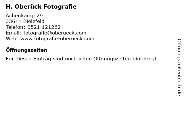 | Öffnungszeiten H. Oberück Fotografie in Bielefeld anzeigen | |