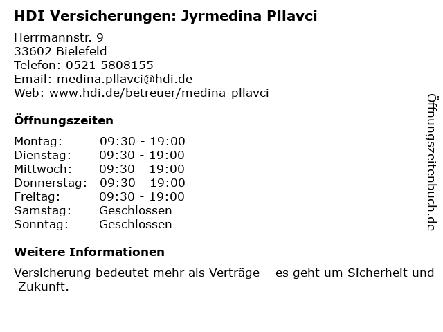 1 HDI Versicherungen: Oliver Bollwicht - GESCHLOSSEN (Entfernung: 0,00 km) Hermannstr. 9, 33602 Bielefeld 6 |