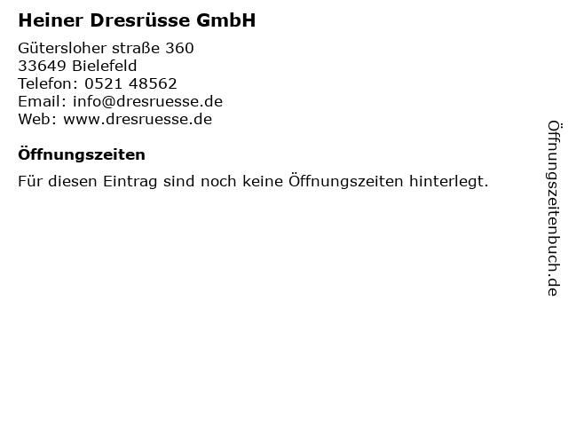 | Öffnungszeiten Heiner Dresrüsse GmbH in Bielefeld anzeigen | |