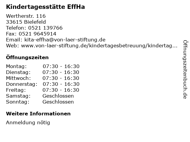 | Öffnungszeiten Kindertagesstätte EffHa in Bielefeld anzeigen | |