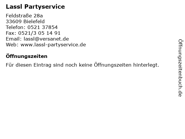 | Öffnungszeiten Lassl Partyservice in Bielefeld anzeigen | |