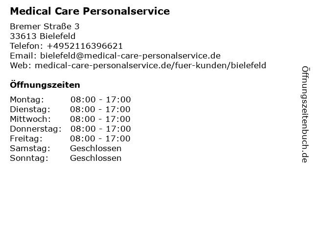 1 medcareer - Das Karrierenetzwerk für Medical & Health Care (Entfernung: 1,14 km) Am Bahnhof 6, 33602 Bielefeld 6 |