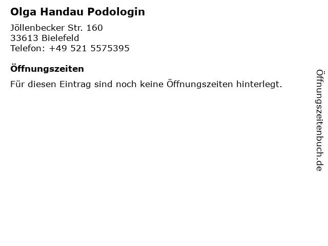 | Öffnungszeiten Olga Handau Podologin in Bielefeld anzeigen | |