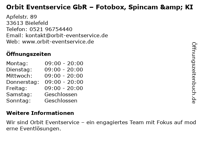 Branchen & Suchbegriffe zu Orbit Eventservice GbR – Fotobox, Spincam & KI:eventservice, fotobox, gbr, ki, orbit, spincam, – |