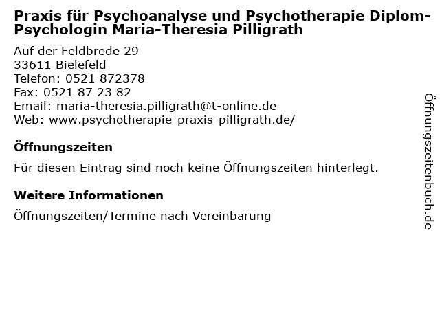 | Praxis für Psychoanalyse und Psychotherapie Diplom-Psychologin Maria-Theresia Pilligrath anrufen | |
