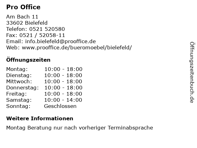 | Öffnungszeiten Pro Office in Bielefeld anzeigen | |