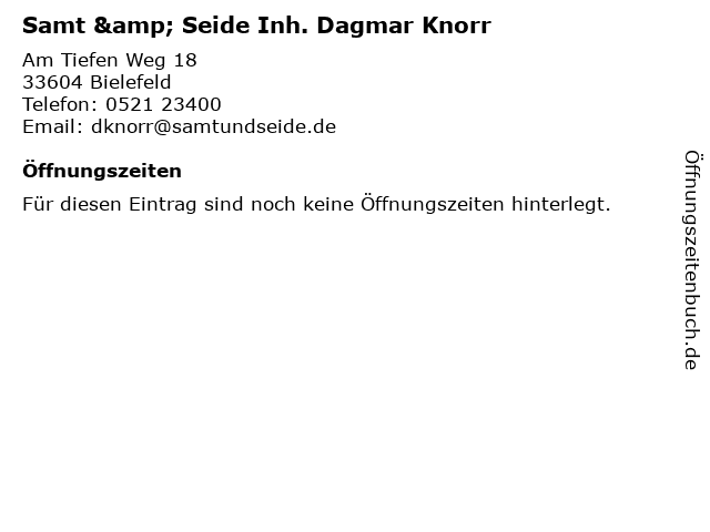 | Samt & Seide Inh. Dagmar Knorr anrufen | |