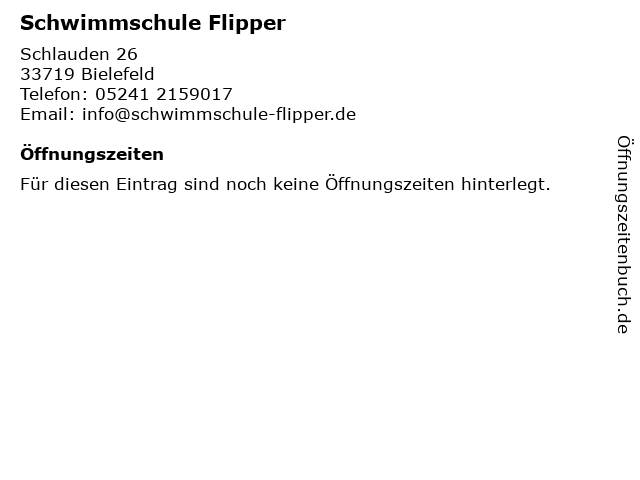 | Öffnungszeiten Schwimmschule Flipper in Bielefeld anzeigen | |