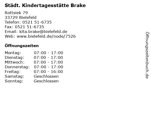 4 Gemeindebüro - Evangelisch-Lutherische Kirchengemeinde Brake (Entfernung: 0,65 km) Glückstädter Straße 4, 33729 Bielefeld 5 Bielefelder Tafel e.V./Ausgabe Brake (Vergabezeiten) (Entfernung: 0,65 km) Glückstädter Str. 4, 33729 Bielefeld 6 Evangelische Kirche Brake - Evangelisch-Lutherische Kirchengemeinde Brake (Entfernung: 0,67 km) Braker Straße 114, 33729 Bielefeld |