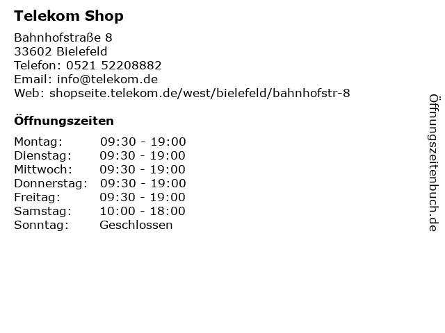 | Öffnungszeiten Telekom Shop in Bielefeld anzeigen | |