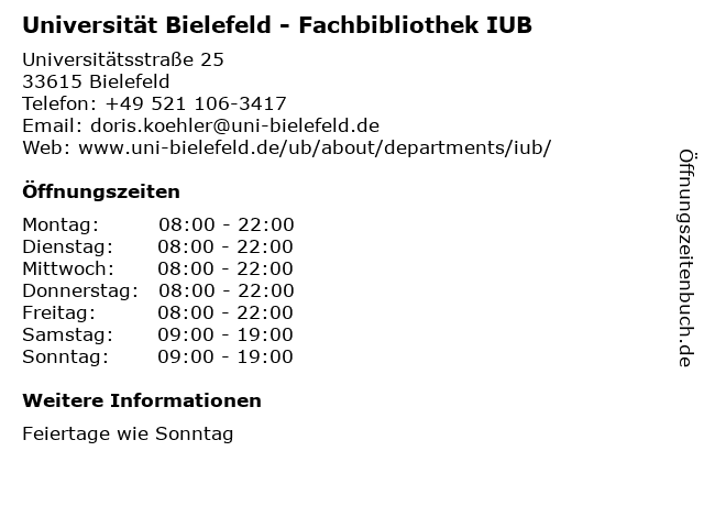 Branchen & Suchbegriffe zu Universität Bielefeld - Fachbibliothek IUB:bibliothek, buch, buchscanner, fachbibliothek, iub, literaturen, sprachen, universität |