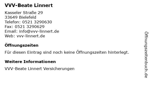 | Öffnungszeiten VVV-Beate Linnert in Bielefeld anzeigen | |