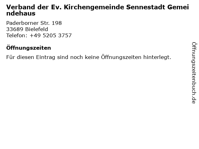 | Verband der Ev. Kirchengemeinde Sennestadt Gemeindehaus anrufen | |