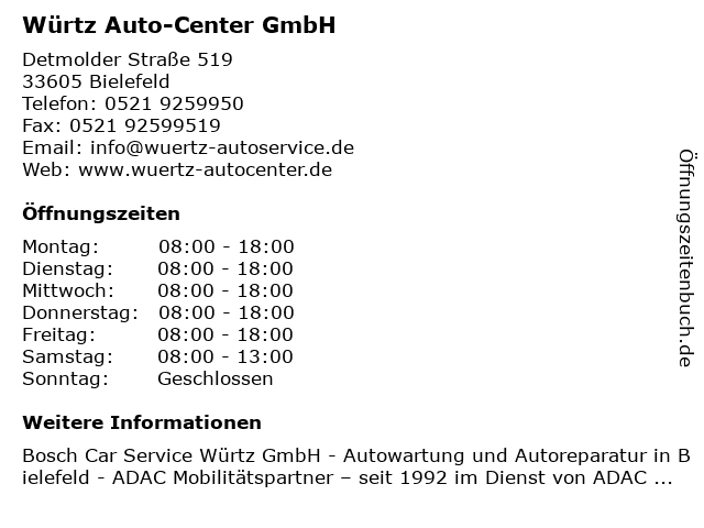| Öffnungszeiten Würtz Auto-Center GmbH in Bielefeld anzeigen | |