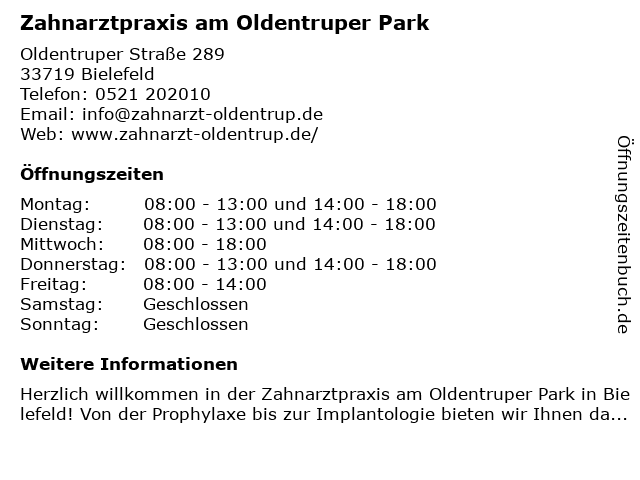 Branchen & Suchbegriffe zu Zahnarztpraxis am Oldentruper Park:endodontie, kosmetische zahnbehandlung, oldentruper, park, parodontologie, zahnarztpraxis, zahnaufhellung, zahnersatz, zahnprothesen |