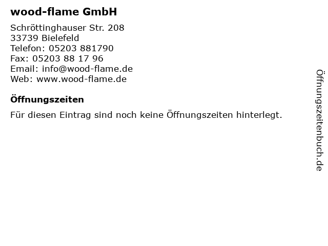| Öffnungszeiten wood-flame GmbH in Bielefeld anzeigen | |