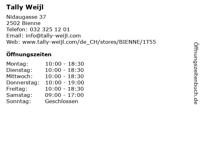| Öffnungszeiten Tally Weijl in Bienne anzeigen | |