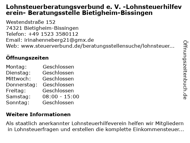 Branchen & Suchbegriffe zu Lohnsteuerberatungsverbund e. V. -Lohnsteuerhilfeverein- Beratungsstelle Bietigheim-Bissingen:beratungsstelle, bissingen, e., einkommensteuererklärung, lohnsteuerberatungsverbund, lohnsteuererklärung, lohnsteuerhilfe bietigheim-bissingen, lohnsteuerhilfeverein, lohnsteuerhilfeverein bietigheim-bissingen, lohnsteuerjahresausgleich, steuerberater, steuererklärung, steuerhilfe, steuerverbund, v. |