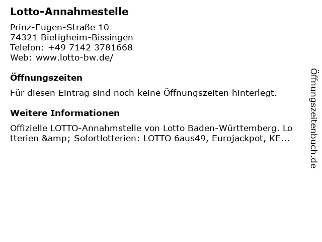 Lotto-Annahmestelle in Bietigheim-Bissingen | Telefonnummer, Öffnungszeiten und Adresse