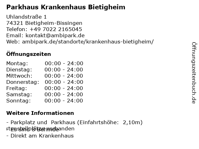 2 DB BahnPark Parkhaus Stuttgarter Straße P1 (Entfernung: 0,94 km) Stuttgarter Straße , 74321 Bietigheim-Bissingen 6 |