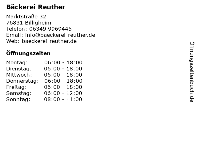 | Öffnungszeiten Bäckerei Reuther in Billigheim anzeigen | |